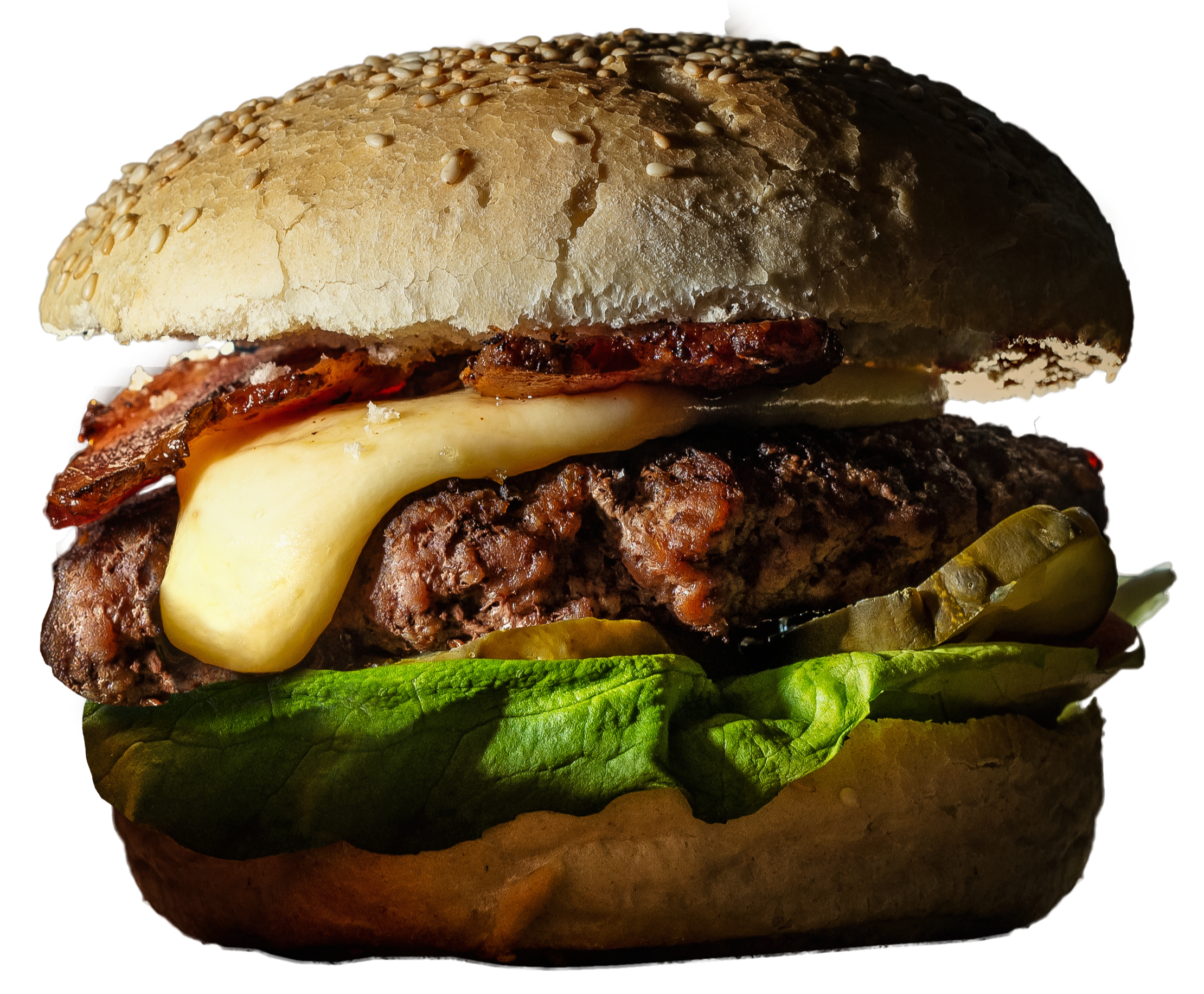 Bułka, wołowina 2x230g, 2x cheddar, 2x bekon, sałata, pomidor, ogórek konserwowy, cebula, sos autorski/bbq,